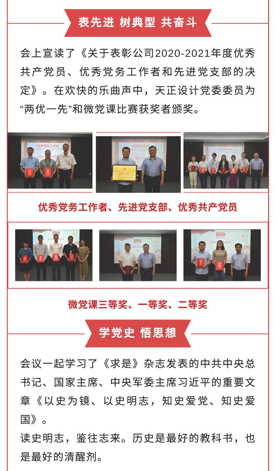 向史而新,续写新的时代华章——天正设计召开庆祝中国共产党成立100周年暨2020-2021年度“两优一先”表彰会