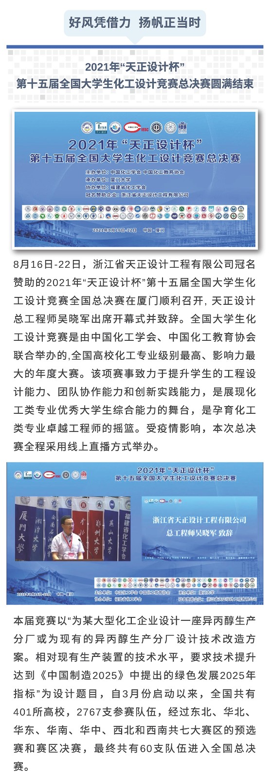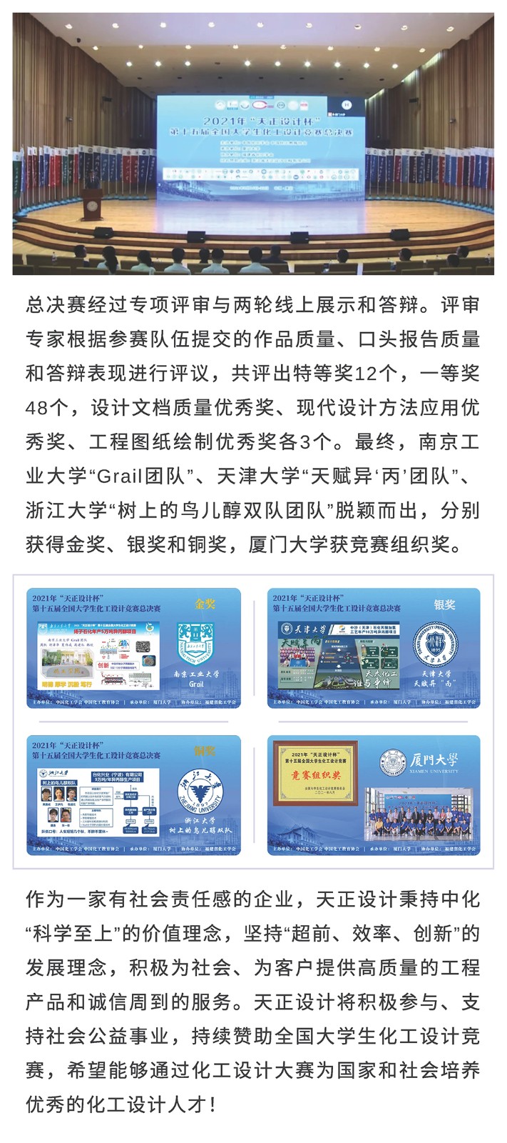 好风凭借力 扬帆正当时——2021年“天正设计杯”第十五届全国大学生化工设计竞赛总决赛圆满结束